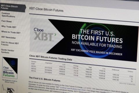 A computer screen at the Cboe Global Markets exchange (previously referred to as CBOE Holdings, Inc.) shows Bitcoin cash and future prices on December 19, 2017 in Chicago, Illinois. Scott Olson/Getty Images/AFP