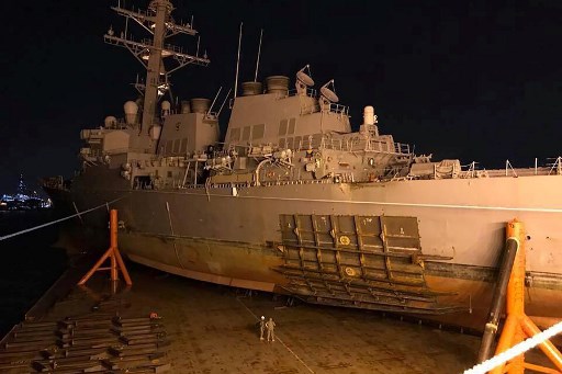 On August 21, the guided-missile destroyer USS John S. McCain smashed into a tanker as the warship headed to Singapore, tearing a huge hole in the hull.