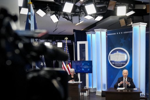 Biden announced what he called the “first tranche” of sanctions, including steps to starve Russia of financing and target financial institutions and the country’s “elites.”
