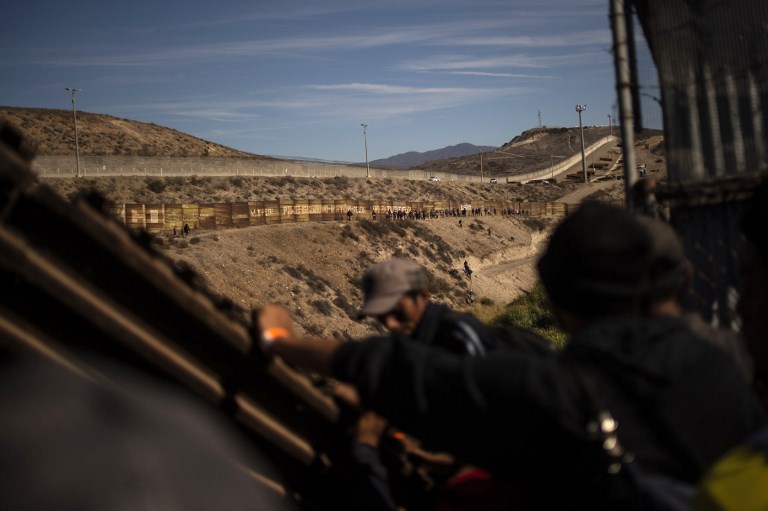 At least 500 migrants, including women and children, had been taking part in a peaceful demonstration in Tijuana before dashing toward the border in an attempt to clamber over a first metal barrier there.
