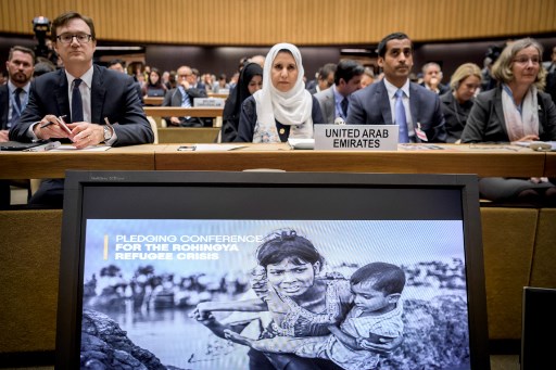 The UN hosts a pledging conference to raise some of the more than USD 400 million humanitarian groups say is needed to help Rohingya Muslims who have fled violence in Myanmar to Bangladesh. / AFP / Fabrice Coffrini/