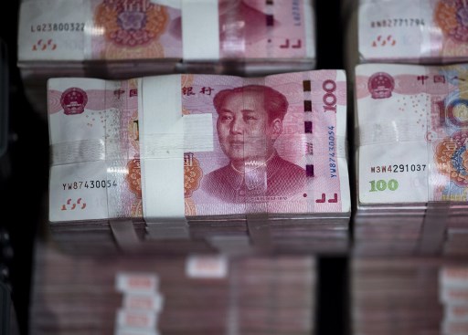 (File photo) Bundles of 100 yuan (14.6 USD) notes are pictured at a bank in Shanghai on August 8, 2018. – A rally in Asian markets stuttered on August 8, with early gains pared as the US-China trade row erodes investor confidence. But the yuan got some support after a news report said the Chinese central bank had emphasized the need for currency stability to the country’s lenders as it looks to halt a slide in recent months. (Photo by Johannes EISELE / AFP)