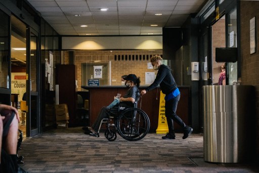 HOUSTON, TEXAS – JULY 16: A patient is helped into the Houston Methodist Hospital on July 16, 2021 in Houston, Texas. As of mid-April, the Houston Methodist Hospital has identified and treated the Delta variant; a mutation of COVID-19. The Houston metropolitan area has seen an upward increase of Delta infections, and research is showing the Delta variant to be 60% more contagious than its predecessor the Alpha variant, also known as COVID-19. Brandon Bell/Getty Images/AFP (Photo by Brandon Bell / GETTY IMAGES NORTH AMERICA / Getty Images via AFP)