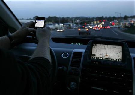 A driver uses his smart phone while in traffic in Encinitas, California December 10, 2009. Reuters/Mike Blake