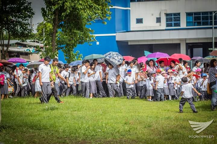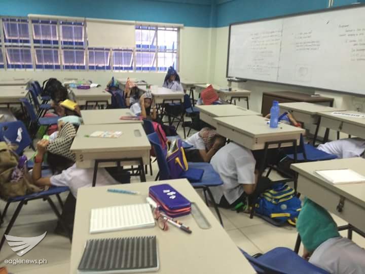 New Era University Elementary Department participate in the National Simultaneous Earthquake Drill (Photo courtesy of EBC News Correspondent, Alejandro B. Soriano)