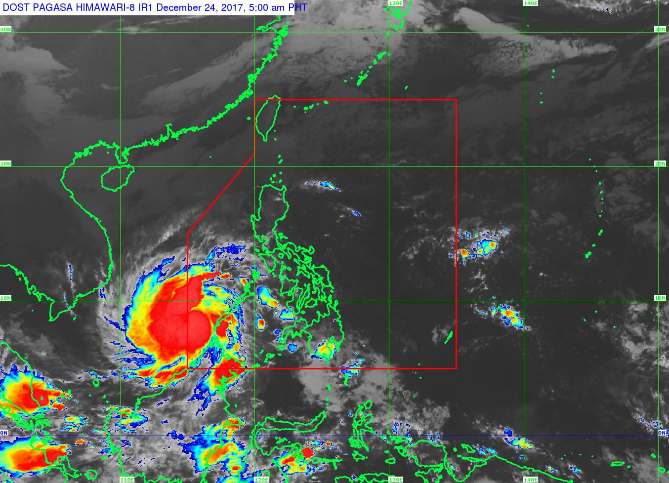 The Philippine Atmospheric Geophysical and Astronomical Services Administration said the eye of “Vinta” was seen 355 kilometers south southeast of Pagasa Island in Palawan.