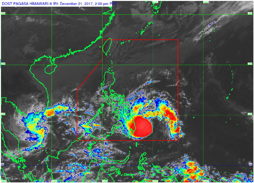 In its 2 p.m. advisory, the Philippine Atmospheric Geophysical and Astronomical Services Administration said the center of the tropical storm was 260 kilometers east of Hinatuan, Surigao del Sur as of 1 p.m.