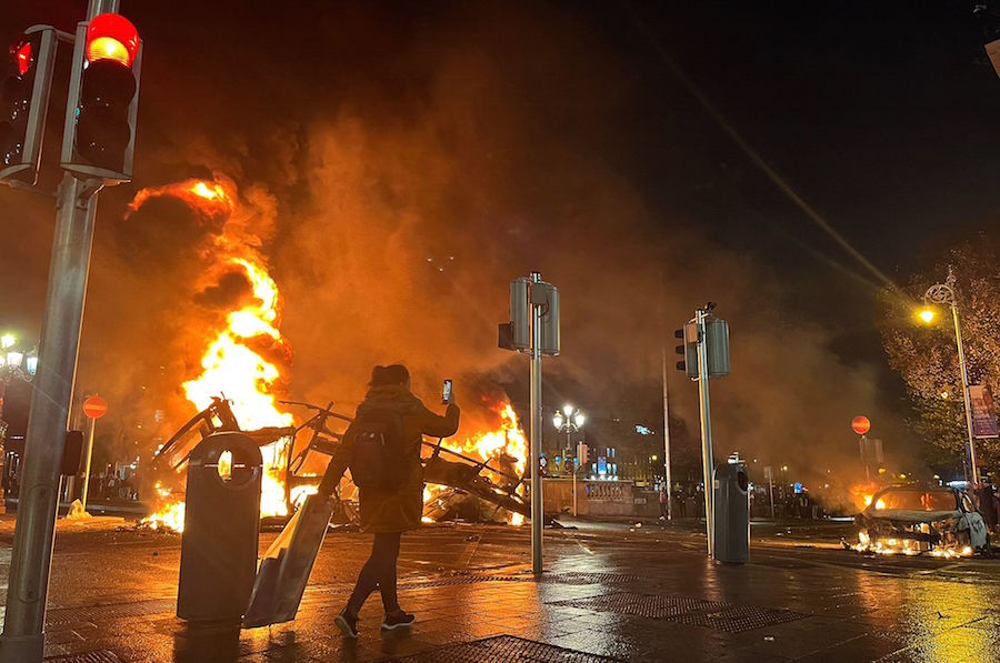 DUBLIN, Nov 23, 2023 (AFP) – Protesters on Thursday fought running battles with police, torched vehicles and looted shops in Dublin, after three young children were injured in a knife attack outside a school.