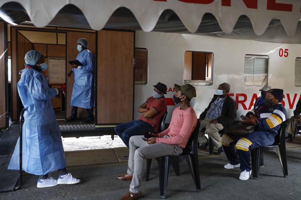 One by one, people waiting in plastic chairs spaced out across a platform in the town of Springs, 50 kilometers (30 miles) east of Johannesburg, were called to board a vaccine center on rails — the “Transvaco”.