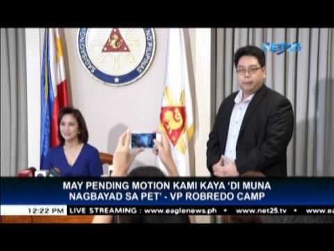 Atty. Romulo Macalintal, Robredo’s lawyer, said that their camp filed a manifestation last April 12, asking the PET for clarification on its order to pay the first tranche.