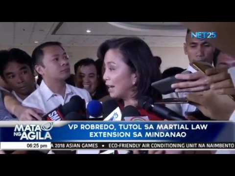 “Merong martial law sa Mindanao, pero nakita natin over the past months, hindi ito nagiging hadlang para yung karahasan maprevent. Una nyan nagkaroon ng bombing sa Lamitan. Ito na naman sa Sultan Kudarat kahapon (Agosto 29). Patuloy pa din. Patuloy yung mga terrorist activities na nangyayari. So, ano yung assurance natin na pag inextend ang martial law talagang mapre-prevent ito? Kasi ito naman talaga yung sadya ng martial law,” ani Robredo.