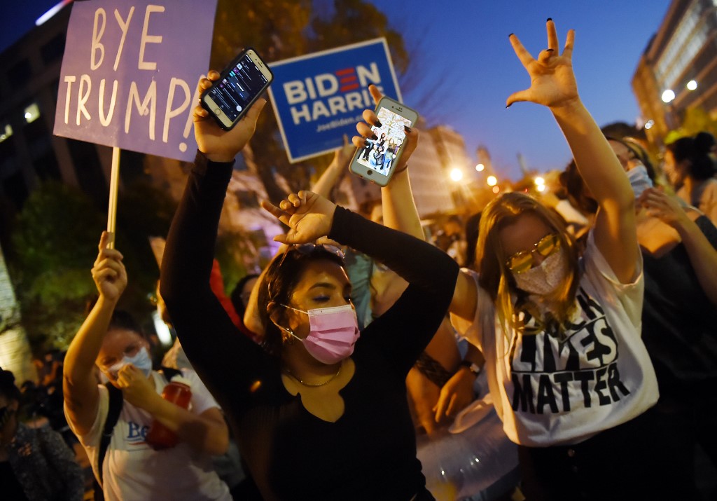 In spontaneous outbursts after news broke of the Democrat’s win following nearly four nail-biting days of vote counting, they gathered outside the White House singing “goodbye” to Trump, celebrated outside Trump Tower in the president’s native and very Democratic New York, and danced in the streets across the country in Los Angeles.