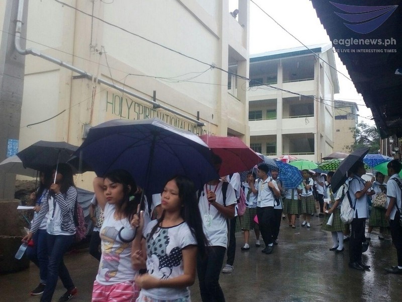 (Eagle News) — Dahil sa patuloy na malakas na buhos ng ulan, nag-anunsyo na kaninang alas-diyes ng umaga (10:00 AM) ng kanselasyon ng klase sa Holy Spirit National High School. Marami naman ang nadismaya dahil sa malaking abala.