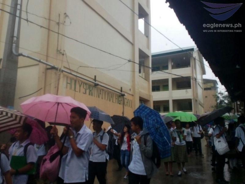 (Eagle News) — Dahil sa patuloy na malakas na buhos ng ulan, nag-anunsyo na kaninang alas-diyes ng umaga (10:00 AM) ng kanselasyon ng klase sa Holy Spirit National High School. Marami naman ang nadismaya dahil sa malaking abala.