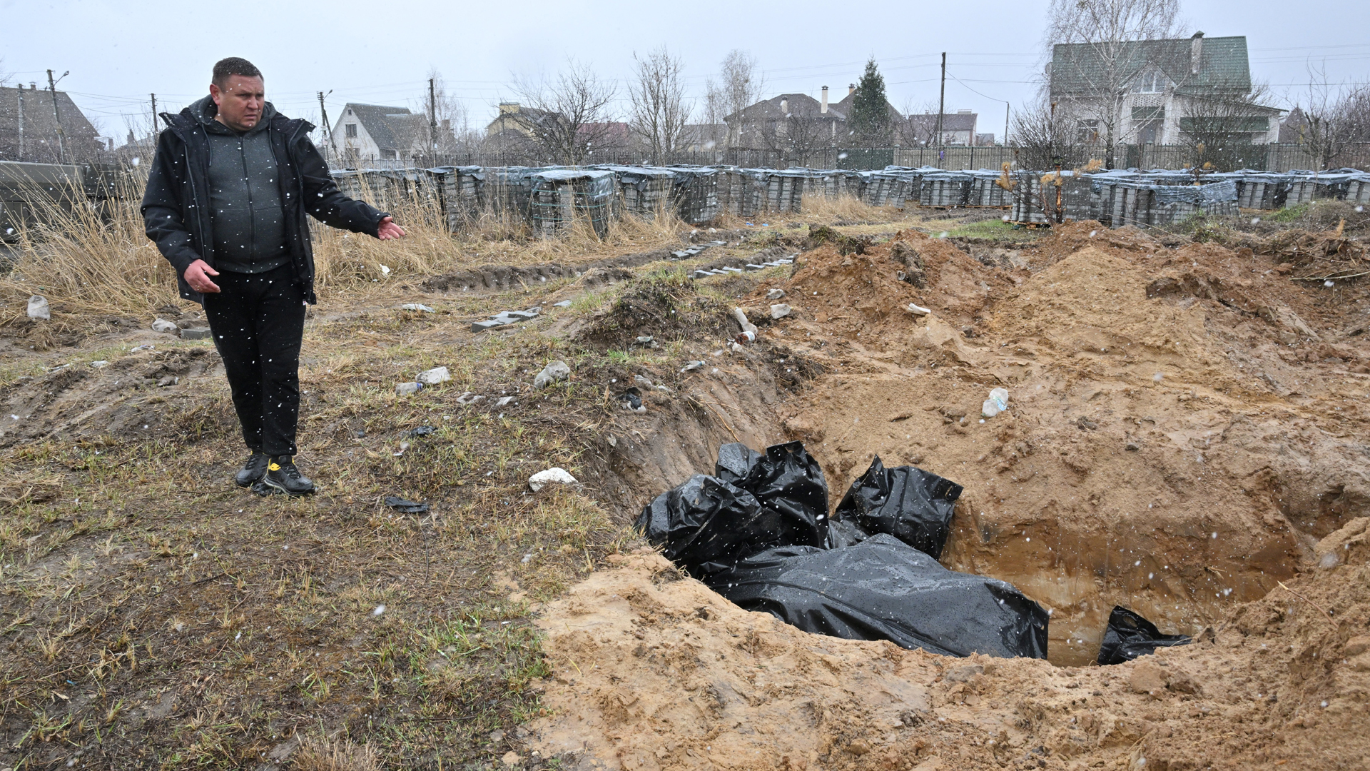 Global outrage and accusations of Russian war crimes mount after the discovery of dozens of bodies, some with their hands bound, near Kyiv.