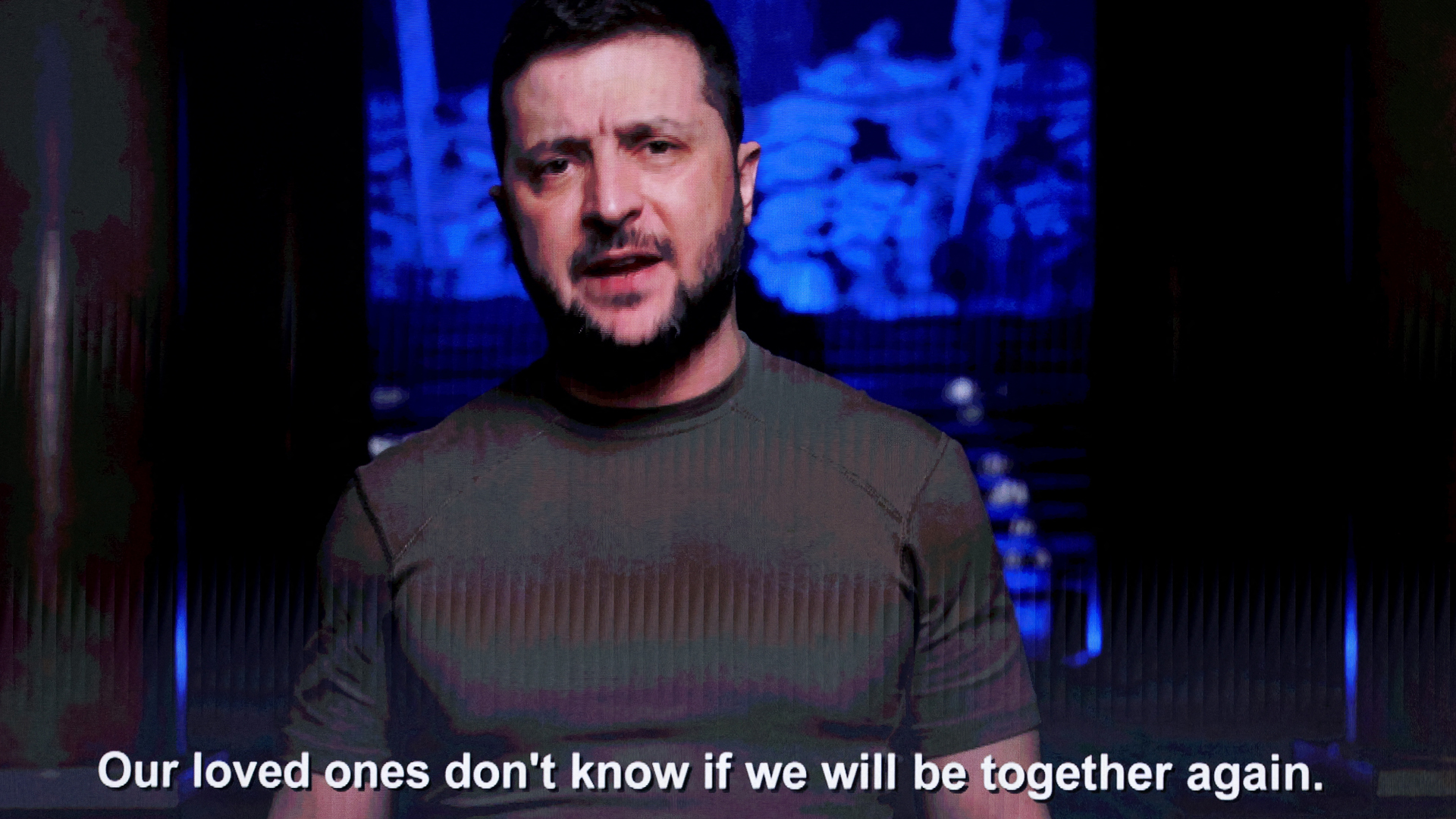 Zelensky makes a surprise appearance at the Grammy music awards, appearing in a pre-taped video urging support for his country.