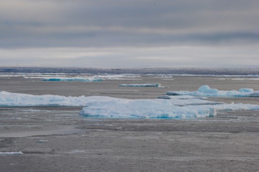 In this September 23, 2015 photo, ice chunks are seen in the Northwest Passage near the CCGS Amundsen, a Canadian research ice-breaker navigating in the Canadian High Arctic. CCGS Amundsen is navigating waters that should be frozen over this time of year. Every year the Amundsen spends 4-5 months in the Canadian Arctic supporting Canadian research programs and collaborations with industry and international partners. Warming has forced a retreat of the polar ice cap, opening up a sea route through the Canadian Arctic Archipelago and connecting the Atlantic and Pacific Oceans for several months of the year. AFP PHOTO