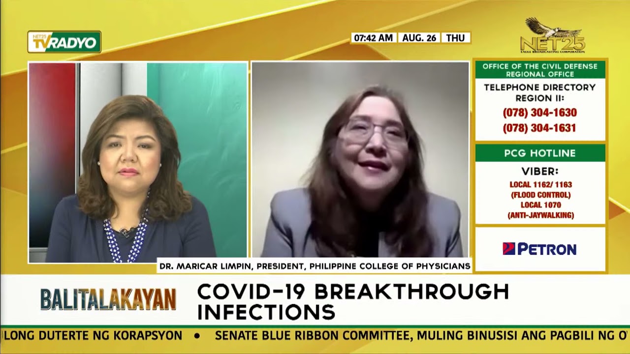 (Eagle News) — The NET25-Radyo Agila program “Balitalakayan” interviews Dr. Maricar Limpin, president of the Philippine College of Physicians on Aug. 26, 2021.