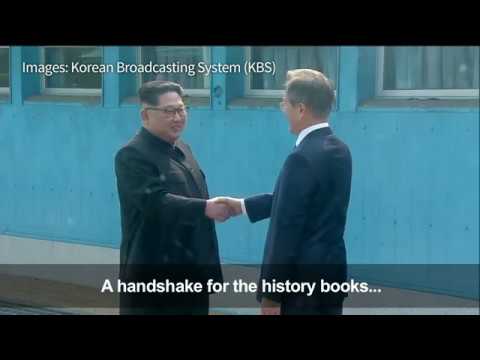 In this video, North Korean leader Kim Jong Un stepped over the Military Demarcation Line to meet South Korean President Moon Jae-in the South side after a “historic handshake” that signaled the start of warmer relations between the two Koreas.