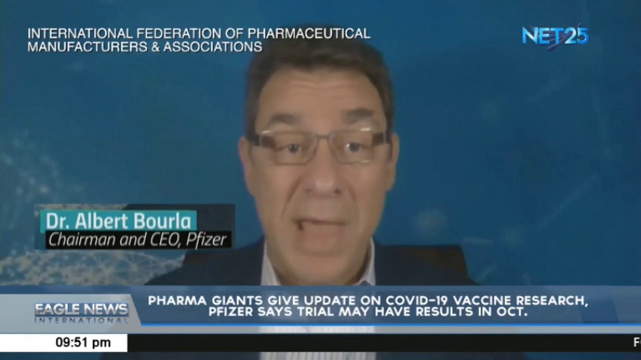 A group of pharmaceutical companies give an update on their research to find a vaccine for the novel coronavirus, with US giant Pfizer saying it could have results from its late-stage vaccine trial as early as October