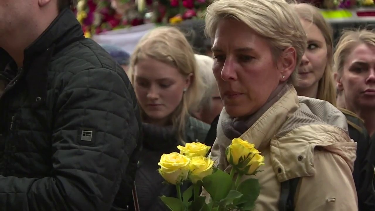 With flowers and prayers, the mourners wrote their messages of love and peace on colorful sticky notes that they placed on a wall of Ahlens department store at the corner of the Drottninggatan pedestrian street, where a stolen beer truck mowed down shoppers before ploughing into the store’s façade last Friday.