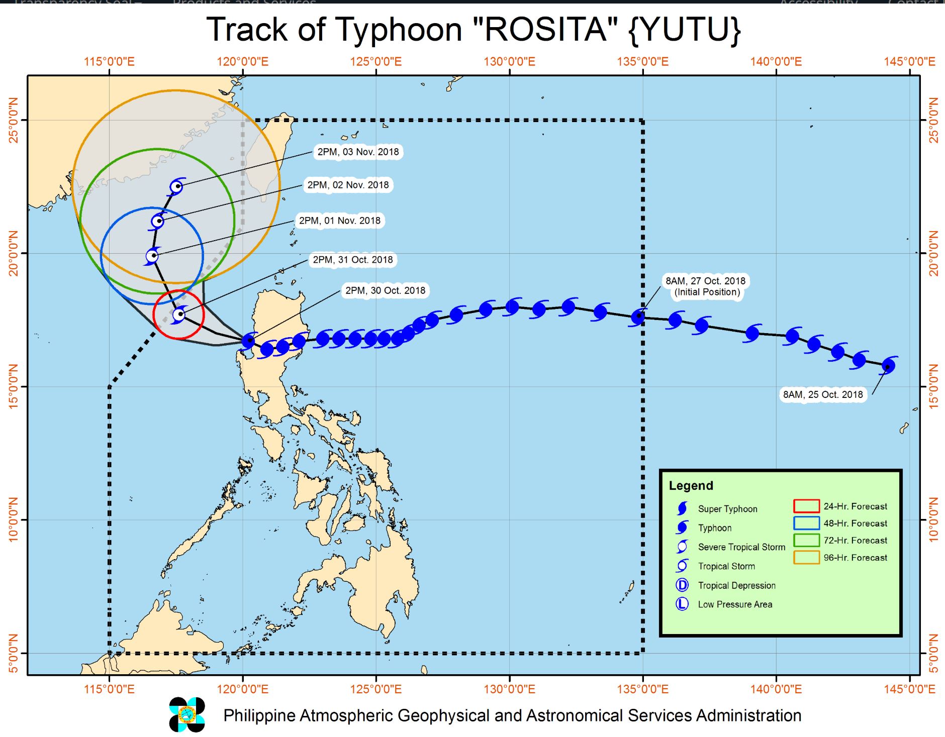 As of its 5 p.m. update, forecasters said the eye of typhoon “Rosita” was located based on all available data at 125 km Northwest of Dagupan City, Pangasinan (16.8 °N, 119.5 °E ) at 4 p.m. Tuesday.