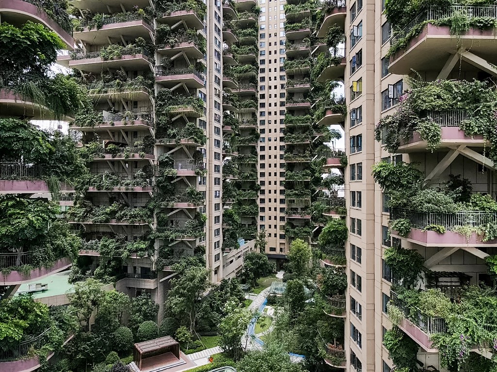 The project in the southwestern city was built in 2018, with every private balcony designed to provide space for plants to grow, according to local media reports.