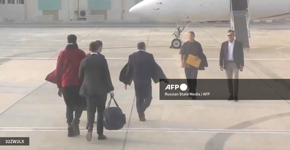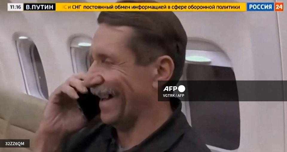 This video grab taken from a footage shown by Russian state media that AFP couldnt independantly authentify shows US basketball star Brittney Griner (L) during a swap of prisoner with Viktor Bout (2ndR), a Russian notorious arms dealer on December 8, 2022 on the tarmac of Abu Dhabi airport. – Griner, 32, who was arrested in Russia in February on drug charges, and Viktor Bout, 55, who was serving a 25-year sentence in a US prison, were exchanged at an airport in Abu Dhabi. In footage released by Russian state media, Griner, shorn of her distinctive dreadlocks, and a relaxed and animated Bout could be seen crossing paths on the airport tarmac and heading towards the planes that would take them home. (Photo by – / Russian State Media / AFP) This video grab taken from a footage shown by Russian state media that AFP couldnt independantly authentify shows US basketball star Brittney Griner being released from prison on December 8, 2022 in Moscow. She was accused of possession of vape cartridges with a small quantity of cannabis oil and sentenced in August to nine years in prison. – Griner was headed home late on December 8, 2022 after being freed from a Russian prison in a swap for Viktor Bout, the notorious arms dealer known as the “Merchant of Death.” US President Joe Biden announced Griner’s release in an address to the nation and Moscow confirmed she had been exchanged in Abu Dhabi for Bout, who was serving a 25-year prison sentence in the US. (Photo by – / Russian State Media / AFP) In this video grab taken from footage released by Russian state television broadcaster VGTRK on December 8, 2022, freed Russian arms dealer Viktor Bout (2nd R), dubbed the “Merchant of Death”, reportedly speaks on a mobile telephone to family members during his flight before arriving in Moscow after a US-Russia prisoner exchange for basketball star Brittney Griner, as shown on Russian state tv channel Russia-24, part of the VGTRK group. – Viktor Bout, who was accused of arming rebels in some of the world’s bloodiest conflicts, carried flowers for his wife and his mother, who waited on the runway as he stepped out of the private jet that took him from Abu Dhabi to the Vnukovo 2 airport in the Russian capital. (Photo by – / VGTRK / AFP) / NO USE AFTER DECEMBER 9, 2027 16:31:55 GMT – — IMAGE RESTRICTED TO EDITORIAL USE – STRICTLY NO COMMERCIAL USE — – — IMAGE RESTRICTED TO EDITORIAL USE – STRICTLY NO COMMERCIAL USE —