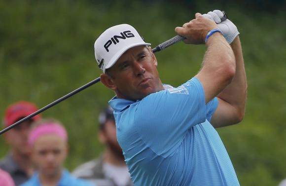 Lee Westwood of England watches his tee shot on the 16th hole during the first round of the 2014 PGA Championship at Valhalla Golf Club in Louisville, Kentucky, August 7, 2014. REUTERS/Brian Snyder