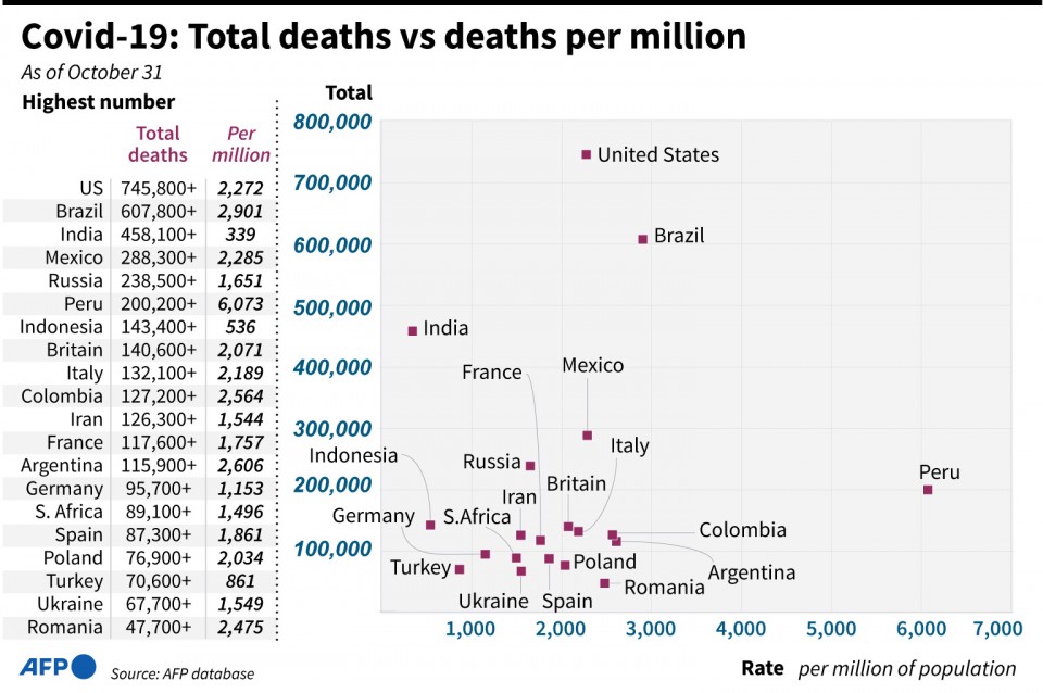 The World Health Organization estimates the overall toll could be two to three times higher than official records due to the excess mortality linked to Covid-19.