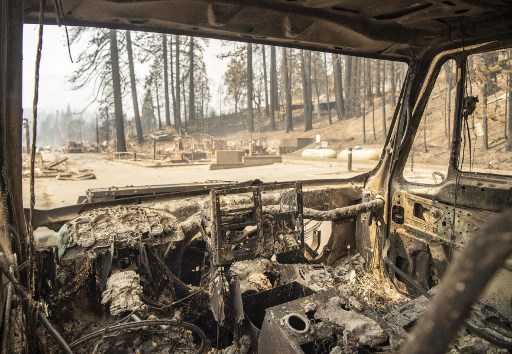 Images taken by an AFP photographer showed the fire’s heat had bent street lights to the ground, with only a few structures still standing.