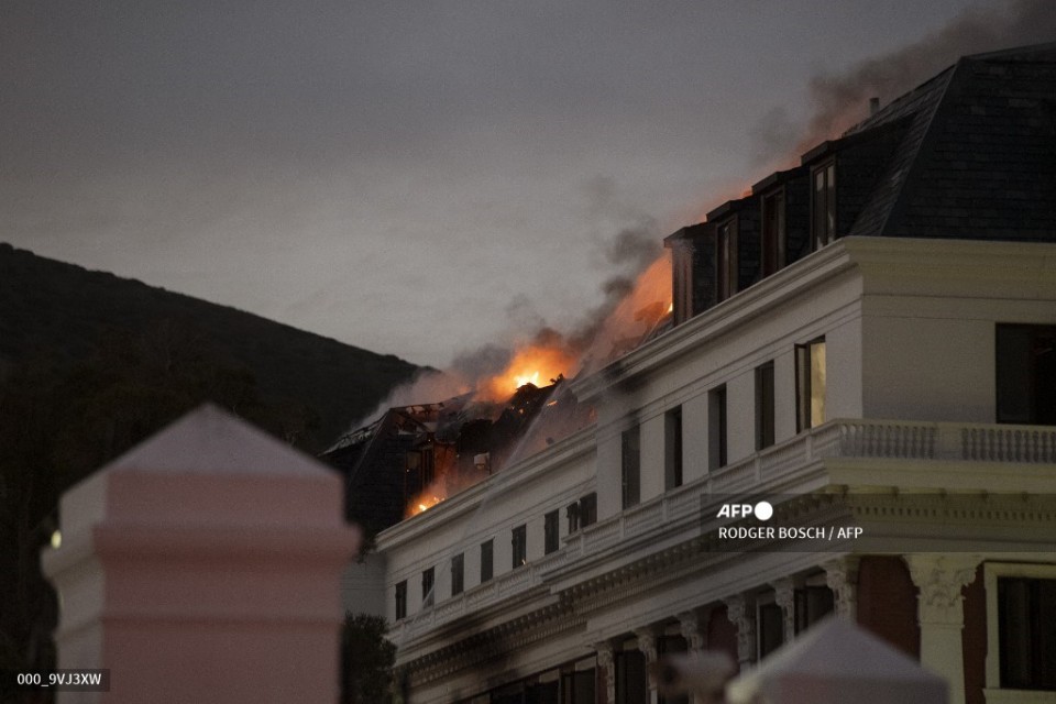 “It’s proving difficult in this wind,” Carelse told AFP, adding that the fire had started again in the roof of the National Assembly building.