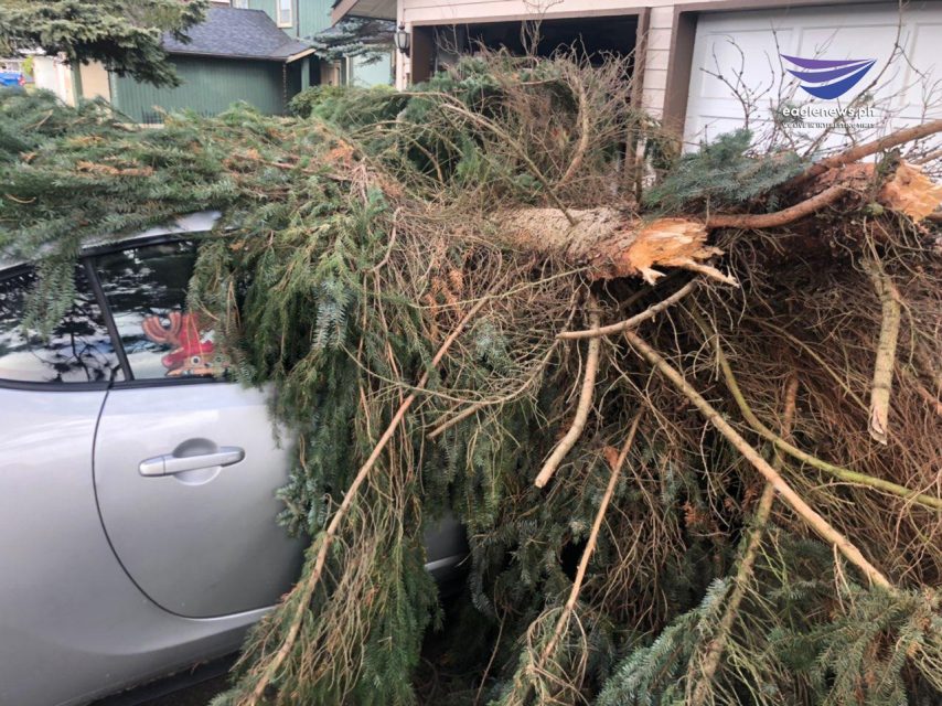 The windstorm also damaged property of residents with trees falling on top of cars in residential areas as well as on highways.