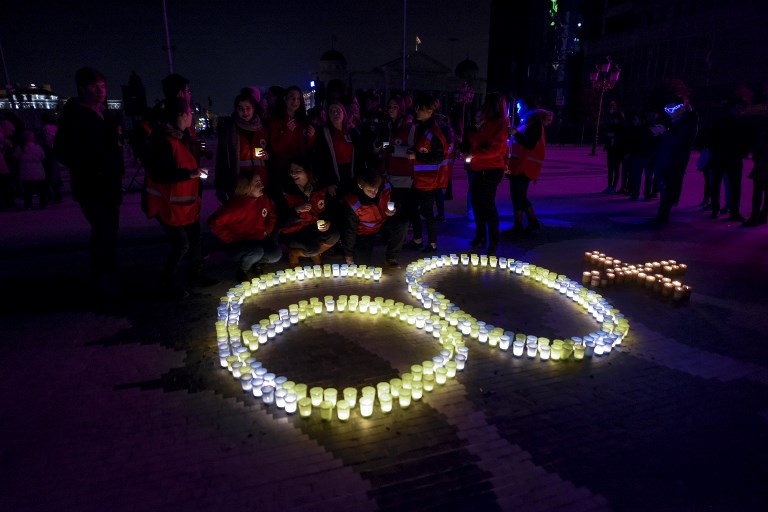 Thousands of cities around the world turned off lights emblematic buildings during the “Earth Hour”, a global event to warn of the dangers of climate change. / AFP PHOTO / Robert ATANASOVSKI