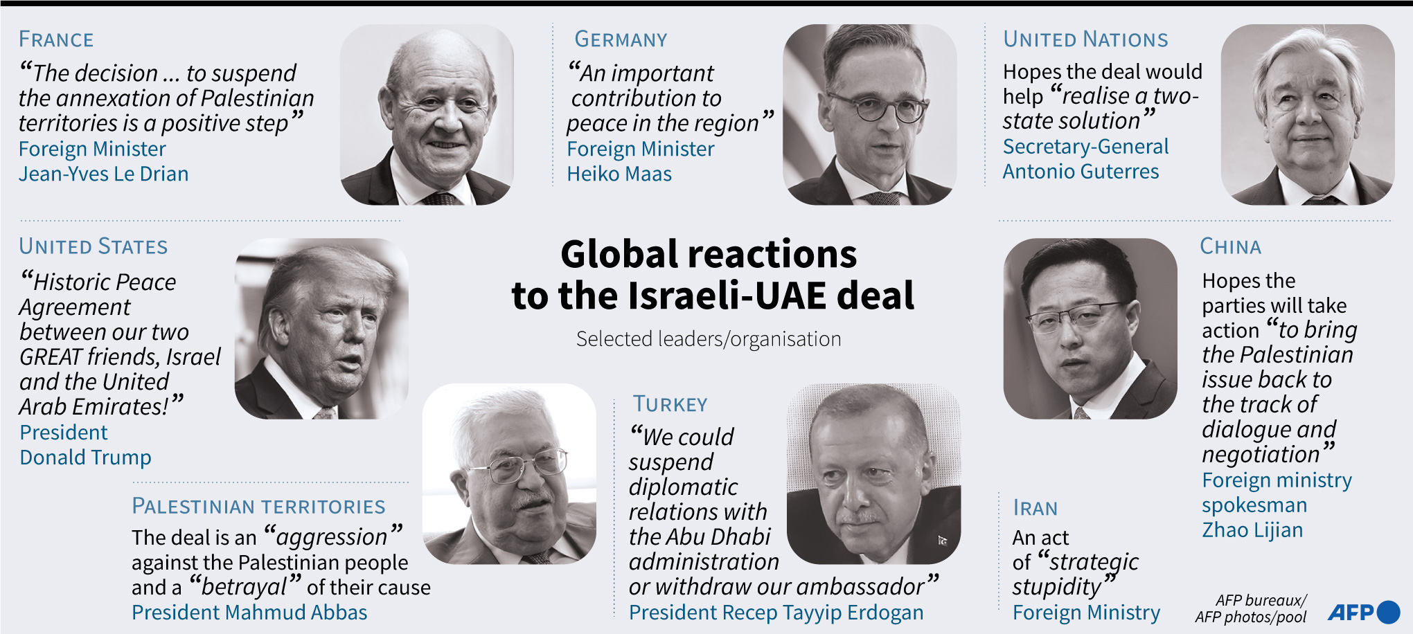 World leaders voiced hope Friday that a historic deal between the UAE and Israel could kickstart moribund Middle East peace talks, even as the Palestinians and some of their allies denounced the move to normalise ties as a betrayal of their cause.