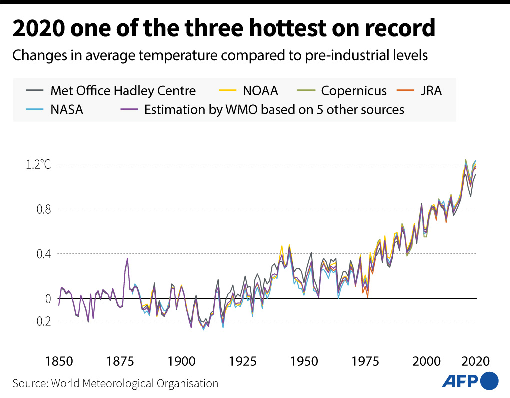 Statistics showed that 2020 was one of the three warmest years on record. The past six years, including 2020, have been the six warmest on record.