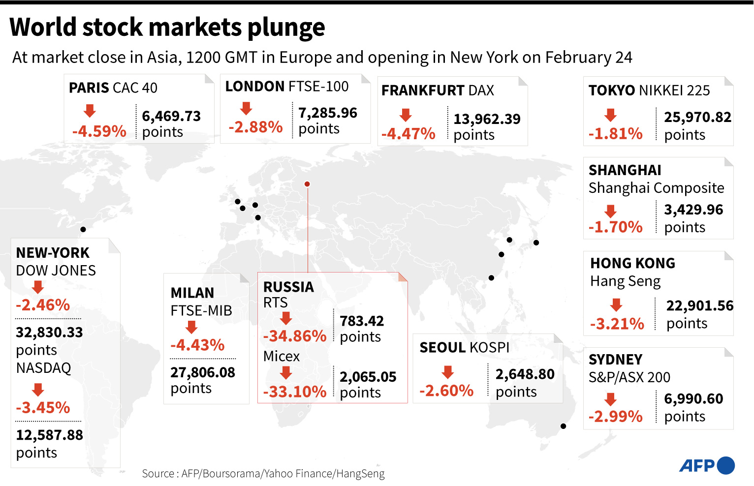 Analysts pointed to fear of the unknown driving the markets, especially over retaliatory sanctions by the West and how Russia will respond.