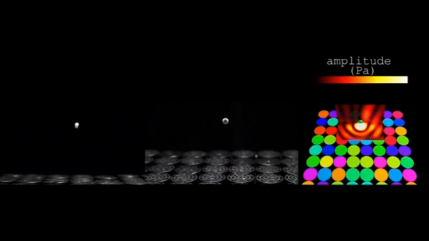 A team from the universities of Bristol and Sussex, in conjunction with Ultrahaptics, a spin-off set up by Sussex Professor of Informatics, Sriram Subramanian, used high-amplitude soundwaves to generate an acoustic hologram that can pick up and move small objects.