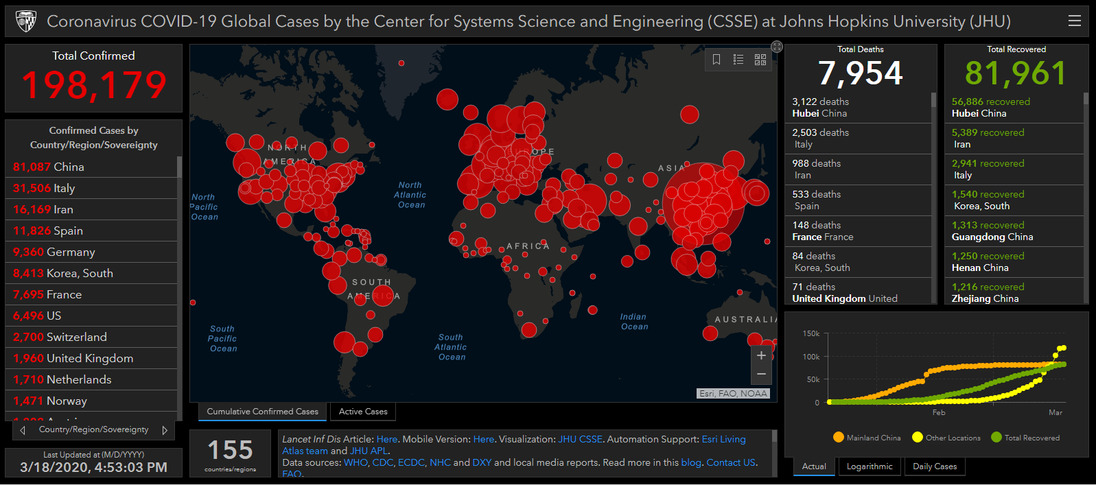 The tally was as of March 18, and also showed that almost 82,000 cases recovered from the disease, or 81,961 to be exact. Total deaths were at 7,954.