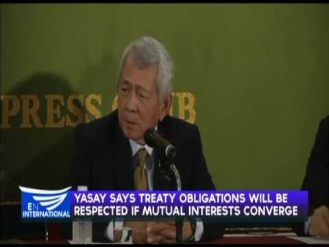 TOKYO, Japan (Eagle News) — Philippines Foreign Affairs Secretary Perfecto Yasay told reporters in Tokyo that his country will respect treaty obligations with the United States as long as mutual interests converge.