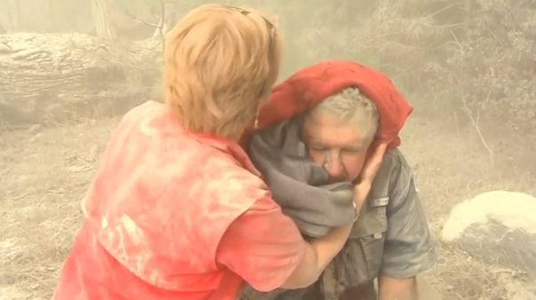 The injured man’s wife, Rachel Evans, told an NBC news affiliate that he was behind the wheel while they were driving through Yosemite when the saw a cloud of smoke. Debris from the slide smashed through the sunroof and hit her husband in the head and he began bleeding profusely, she said.