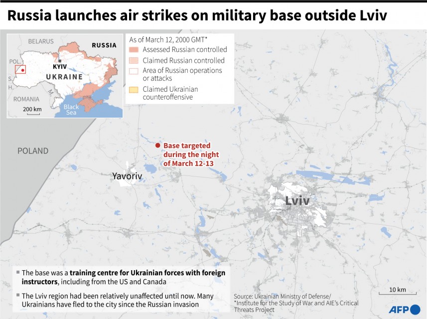 Russia’s forces had earlier focused on eastern and southern areas of Ukraine — home to more ethnic Russians — but in recent days have moved to the country’s centre, striking the city of Dnipro, and now to the west with the attack at military base in Yavoriv near Poland, which had been a training centre for Ukrainian forces with foreign instructors.