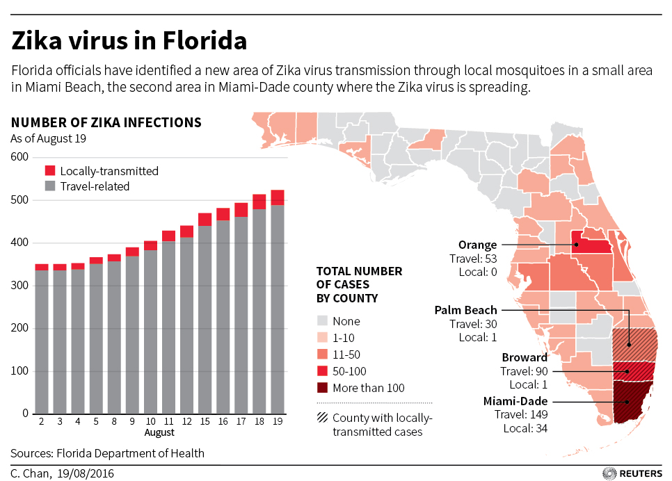MIAMI/CHICAGO (Reuters) – Federal health officials on Friday warned pregnant women not to travel to trendy Miami Beach after Florida confirmed that the mosquito-borne Zika virus was active in the popular tourist destination.