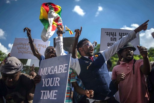 JOHANNESBURG, South Africa (AFP) — Hundreds of Zimbabweans who fled their homeland for South Africa during the despotic rule of Robert Mugabe took to the streets of Johannesburg to celebrate the resignation of the hated president.